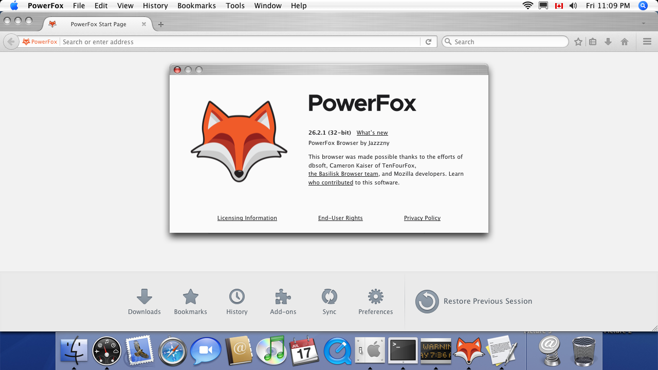 Thank you to everyone who has supported PowerFox’s development! A big thank you to Cameron Kaiser for TenFourFox (again), as this port would not have been possible without his excellent work over 10 years ago.